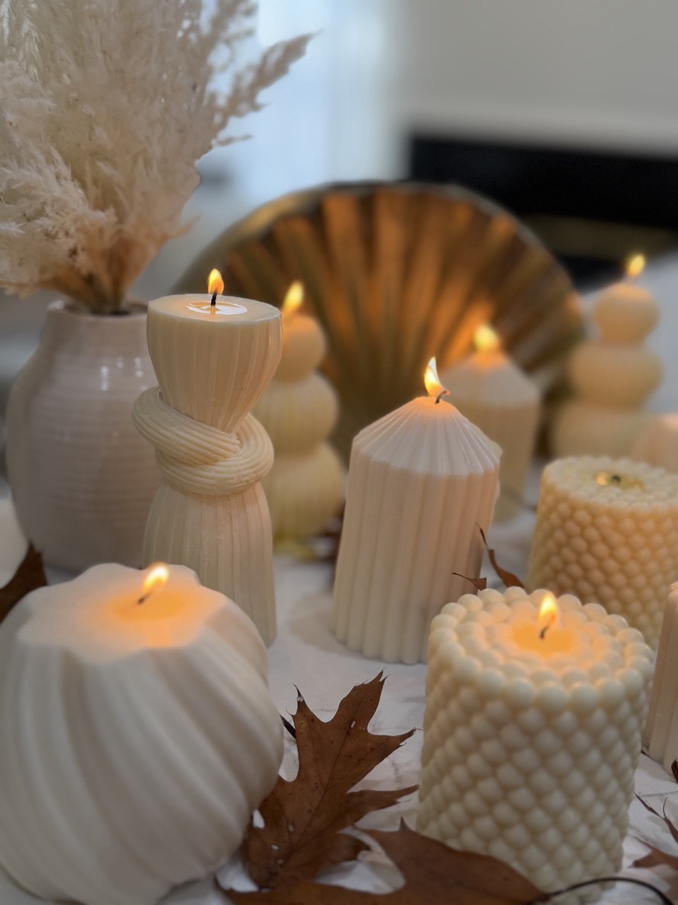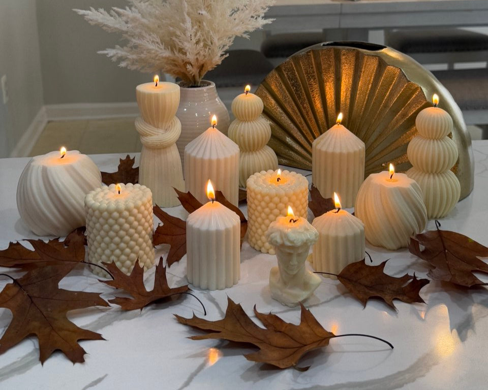 A celebration of sculpture form, warmth, and quite sophistication. Each candle is hand-poured to perfection, merging modern design with timeless elegance. The collection's unique silhouettes - from soft ripples to intricate pearls- capture the poetry of texture and glow.